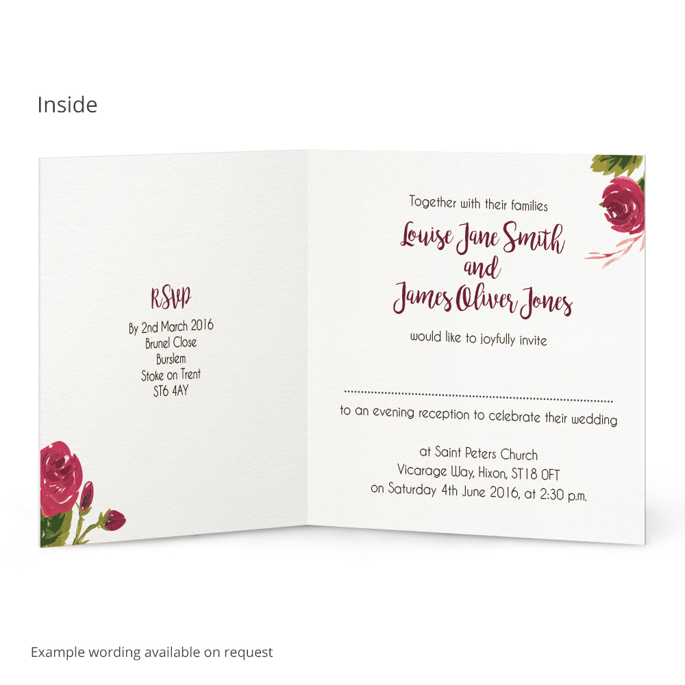 The Bridget evening invitation is a lovely summery way to invite your guests to the evening of your wedding. Customise the text both inside and out to give your invites a lovely personal feel and have the style to match. There’s also matching textured envelopes included too!