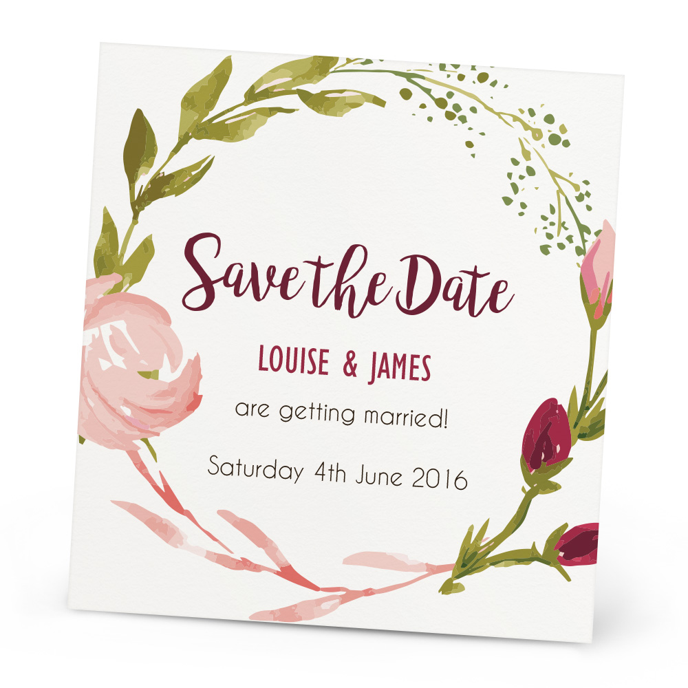 The Bridget save the date cards are a lovely way to let your guests know when your wedding will be. With a beautiful painted style of roses and leaves, these save the date cards will give your wedding the perfect sweet start!