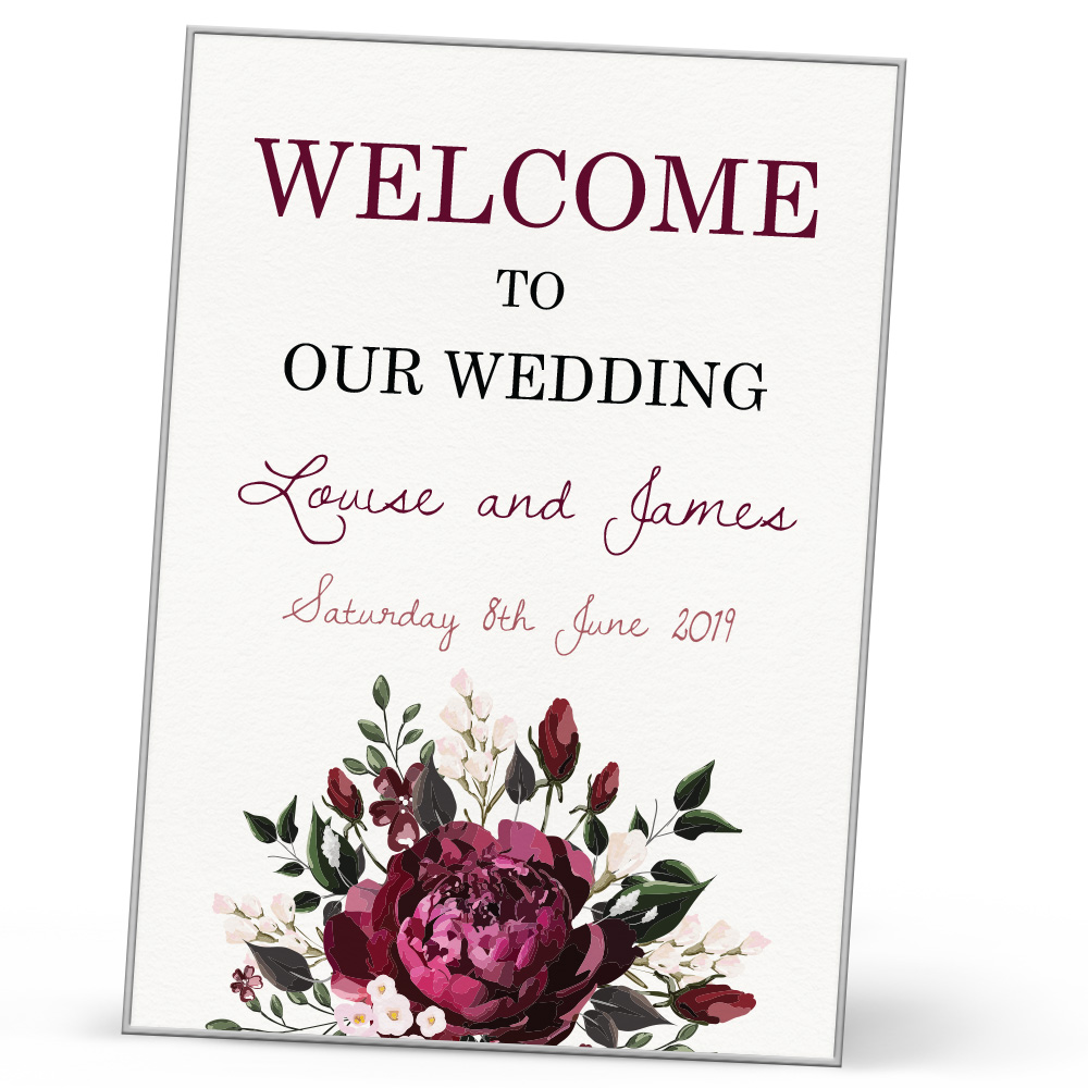 The Charlotte Welcome Sign is a beautiful way to welcome your guests at your wedding. The Welcome Sign is created in the colour of your choice, plus there’s a range of sizes available – A3 or A4. The Welcome sign is printed onto 300gsm card and will look beautiful as it is, or could be put into a frame to finish.
