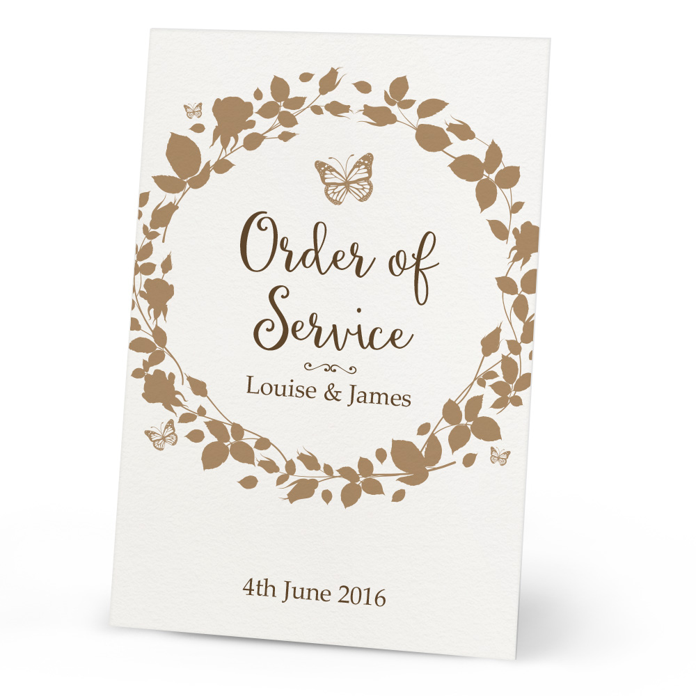 Keep your wedding guests informed with the Beautiful Wishes Delilah order of service cards with the style and colour to match your wedding ceremony. Personalise the text and colour to for your wedding.