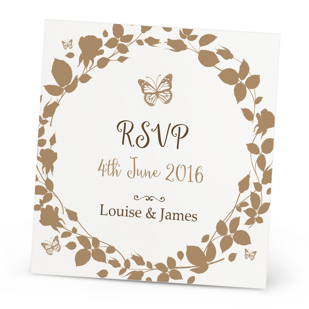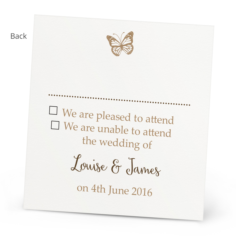 The wedding is planned and booked! This beautiful Delilah RSVP card will let your guests give you the feedback of attending your wedding. Personalise the message on the front and inside and choose your colour to give a message tailored to your wedding!
