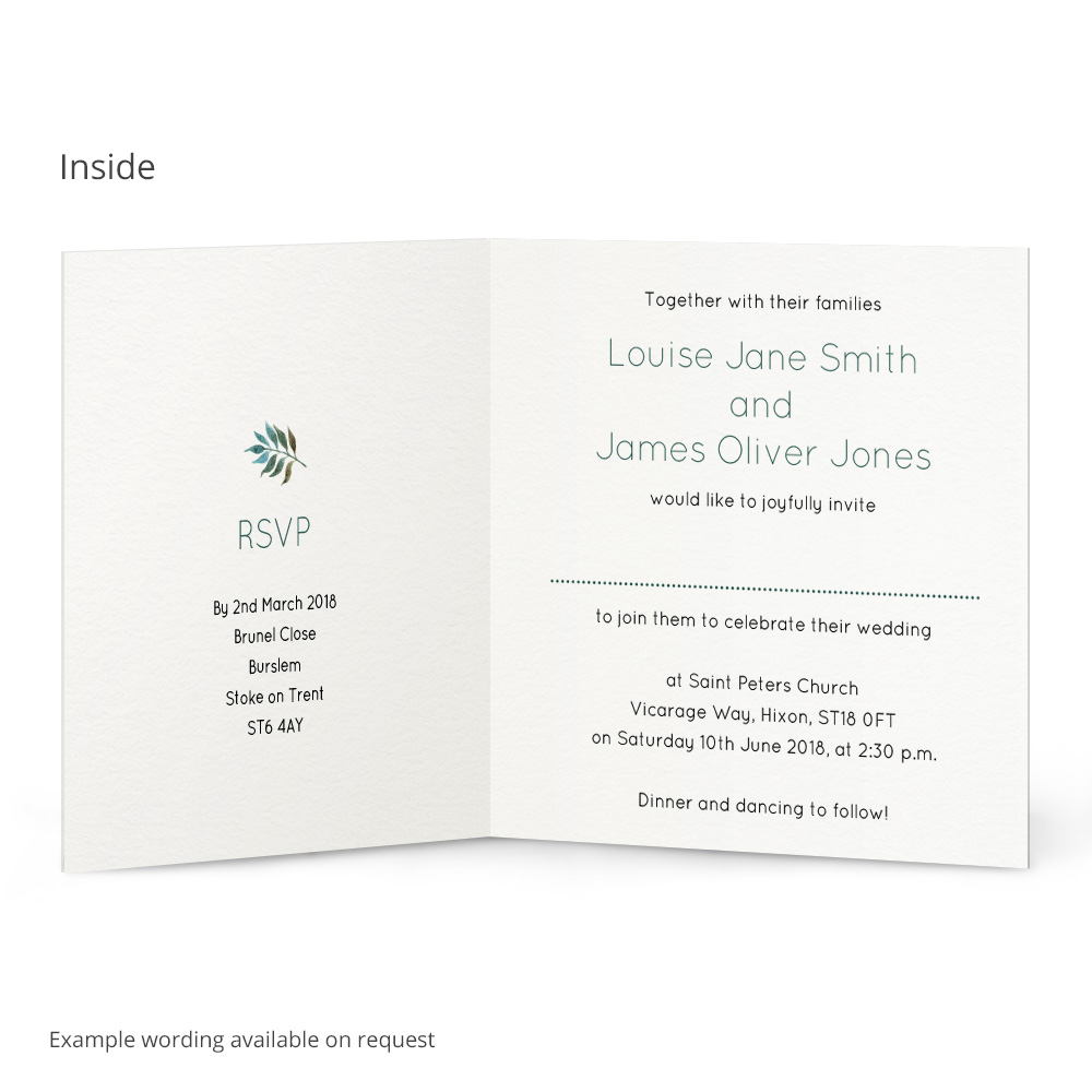 The Freya Wedding Invitation is tailored to your wedding by personalising all the text to your choice to make these completely unique for your wedding guests. We also offer a full range of matching Wedding Stationery to let the theme flow throughout your special day. All our Invitations come with matching envelopes too!