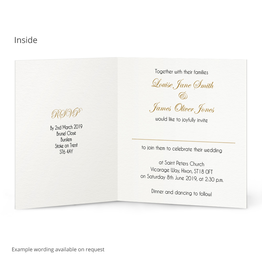The Georgia Wedding Invitation is tailored to your wedding by personalising all the text to your choice to make these completely unique for your wedding guests. We also offer a full range of matching Wedding Stationery to let the theme flow throughout your special day. All our Invitations come with matching envelopes too!