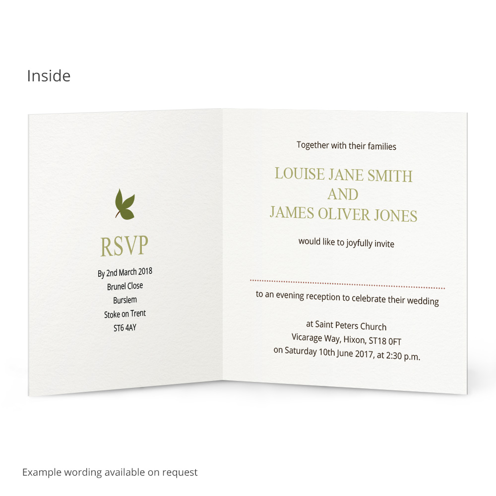With the Harriet Evening Invitation, you can fully personalise the text inside and outside of the card with a colour of your choice, and a tailored message for your wedding guests. This evening invitation is printed onto textured 300gsm card, giving these invitations a lovely feel. Matching envelopes are included with these evening invitations, plus – we also have a complete range of stationery in the Harriet collection to make the theme shine through your wedding!