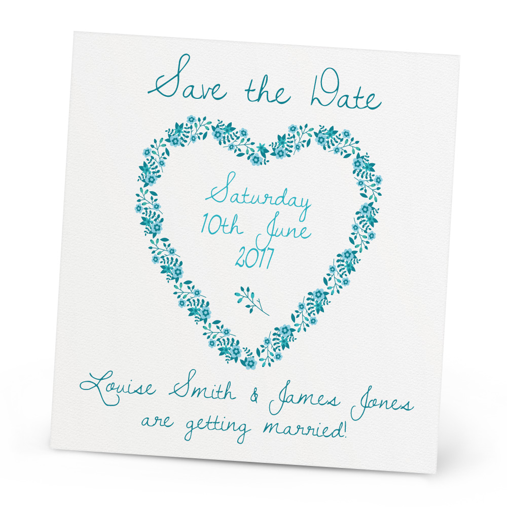 Let your friends and family know when your wedding will be with the Imogen Save the Date Card. The card features beautiful heart shaped bunches of flowers which encloses beautifully personalised text. Beautiful Wishes will also provide matching textured envelopes to send these out to your guests.