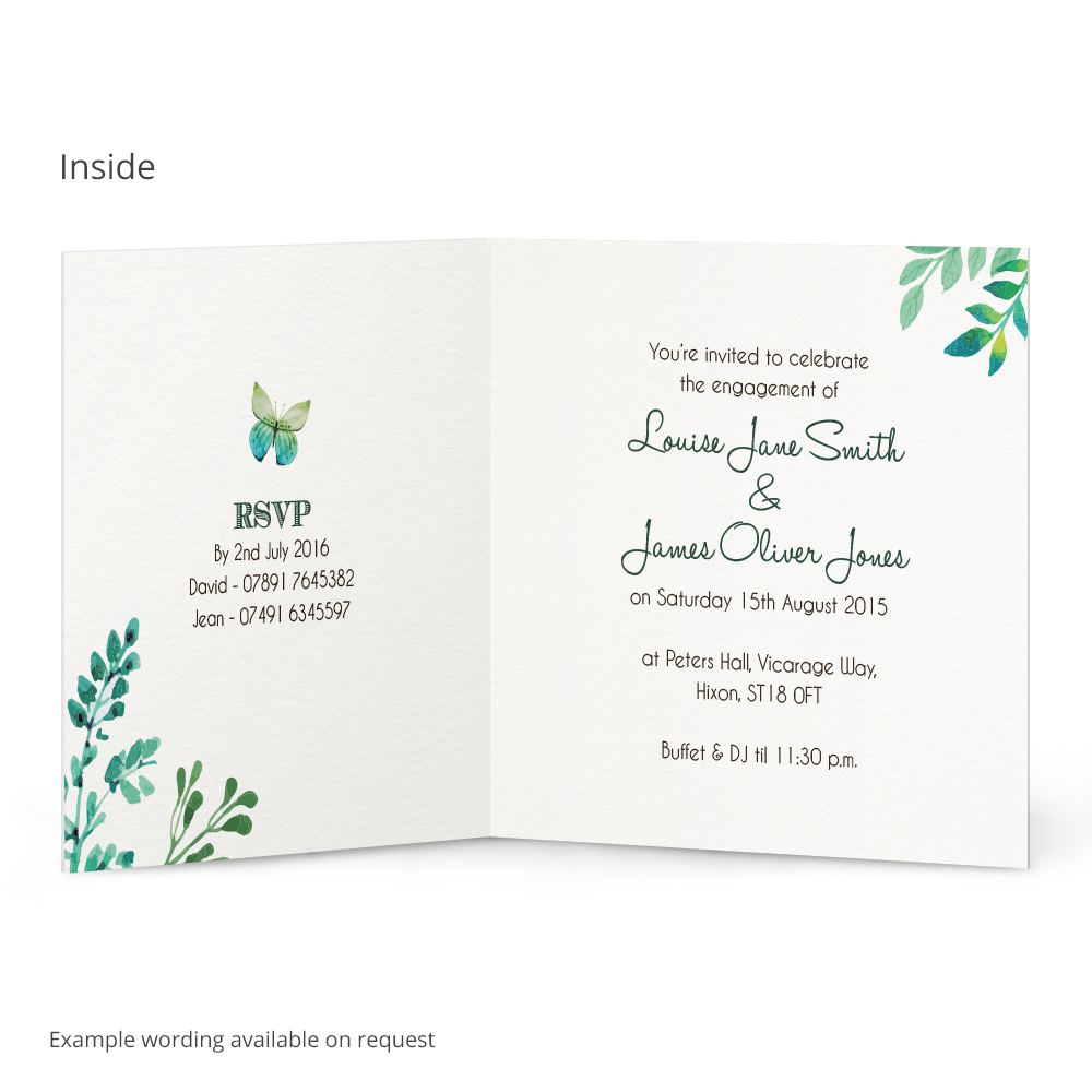 Congratulations – you’re engaged! Let your guests celebrate your engagement with you with these Jasmine engagement party invitations. Personalise the text text to give a truly personal feel to your engagement party. Included with the invitations are matching textured envelopes too!