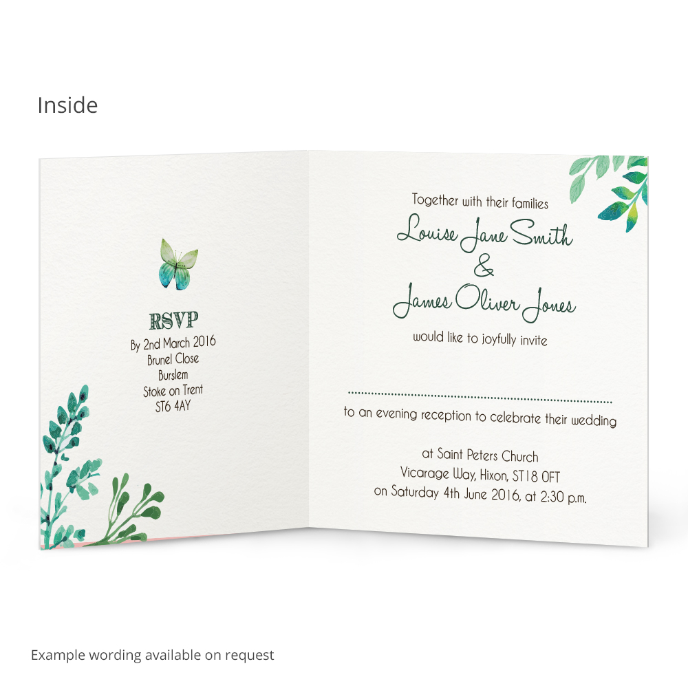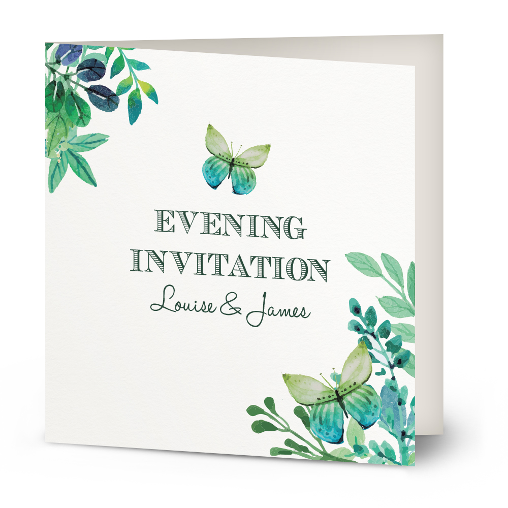 The Jasmine evening invitation is a lovely summery way to invite your guests to the evening of your wedding. You get the choice to personalise the text, and will give your invites a lovely personal feel and have the style to match. Matching textured envelopes are included too!