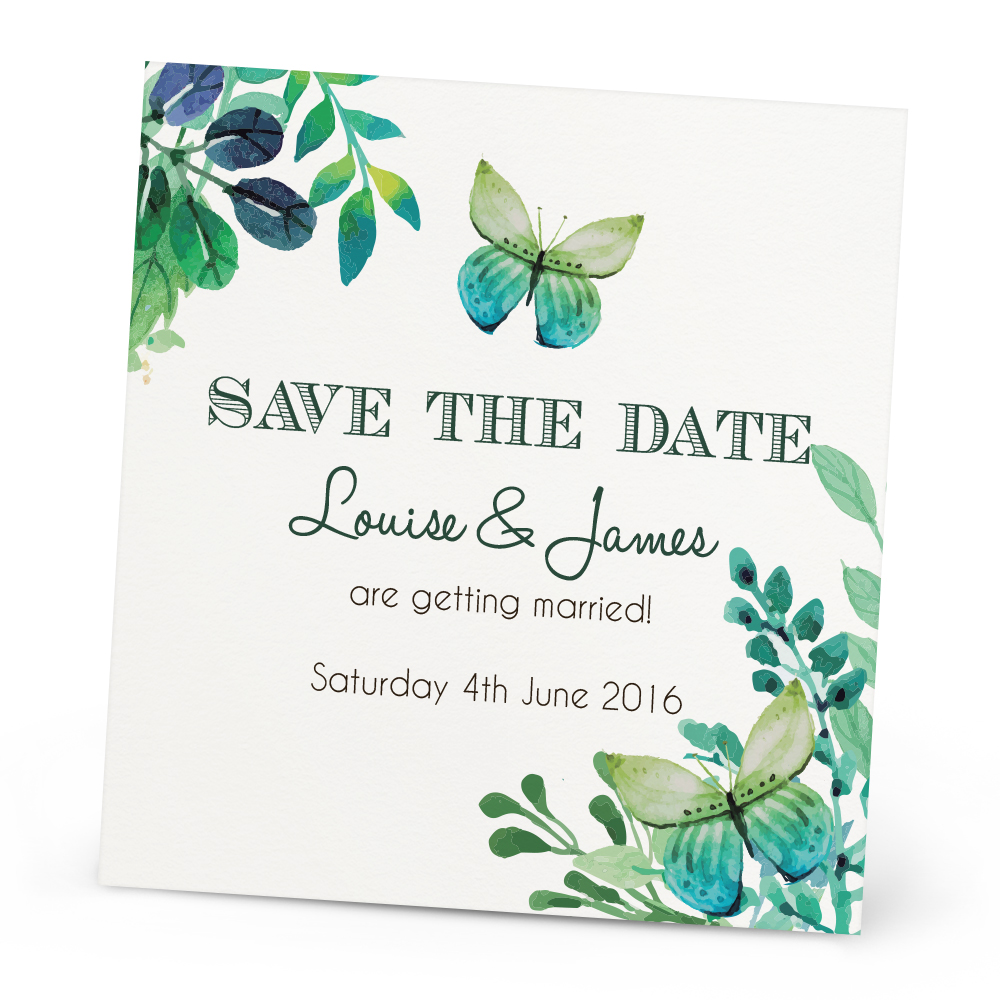 The Jasmine save the date cards are a lovely way to let your guests know when your wedding will be. With watercolour style painted flowers and butterfly, these save the date cards will give your wedding the perfect sweet start!
