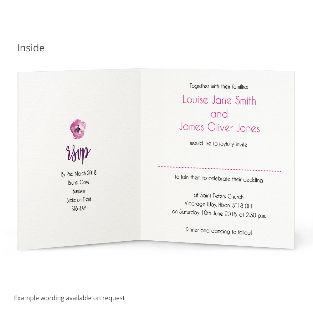 The Leah Wedding Invitation is tailored to your wedding by personalising all the text to your choice to make these completely unique for your wedding guests. We also offer a full range of matching Wedding Stationery to let the theme flow throughout your special day. All our Invitations come with matching envelopes too!