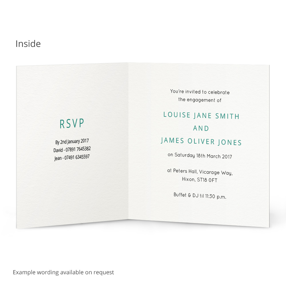 Let your friends and family know about your engagement party with the Louise Engagement Invitation. Write your own message inside the card, plus choose your colour to make these cards unique to your celebrations. Textured envelopes are included, plus every invitation is printed onto thick 300gsm textured card.