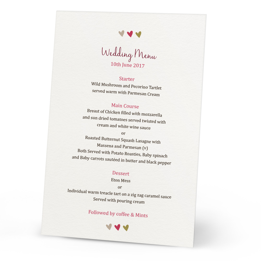 For your wedding breakfast, these Orla wedding menus will be a lovely addition to your tables. You can match the colour to your wedding, plus also buy these with matching Table Plan, and Place Cards for a beautiful flowing style through your wedding.
