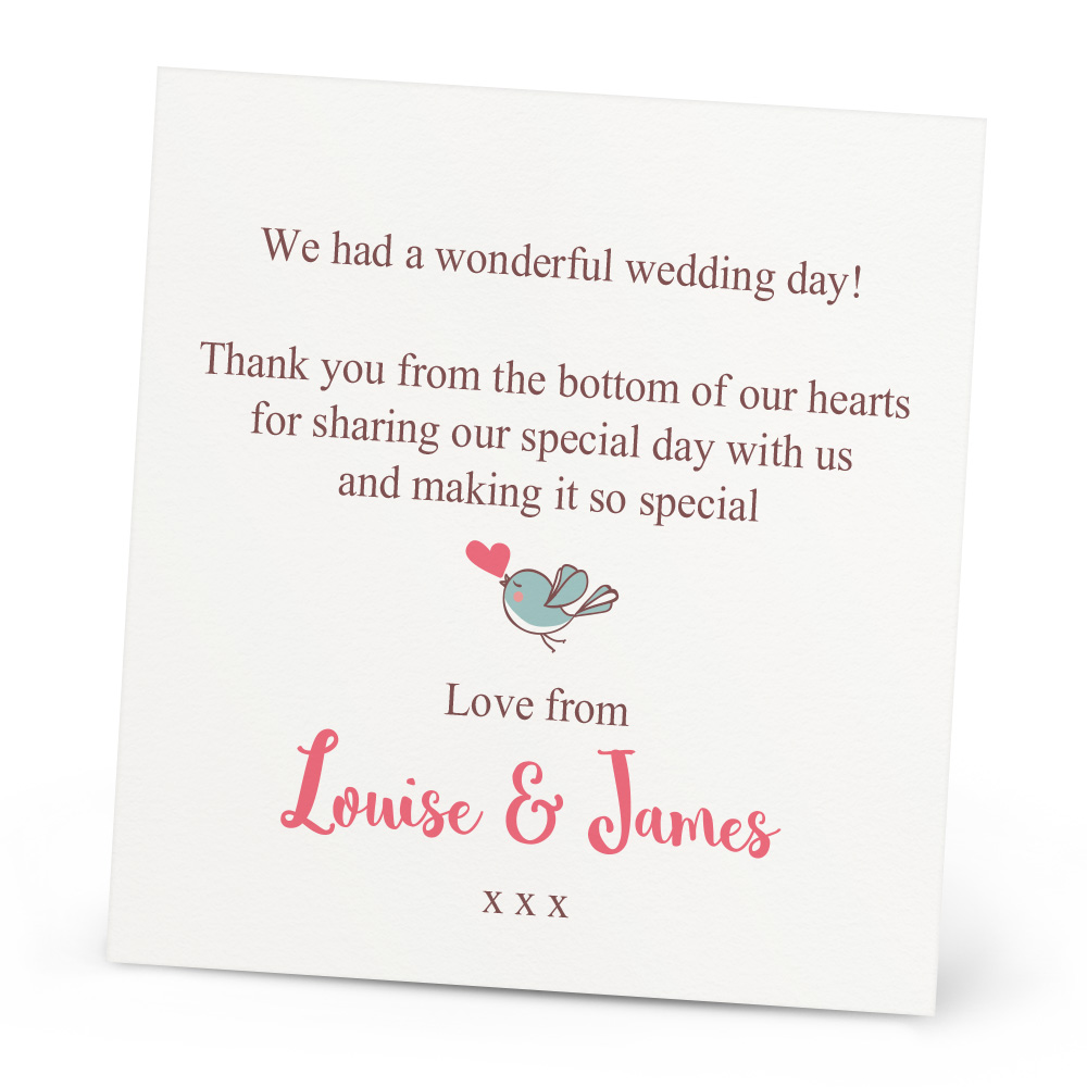 The Penny Thank You Card is a lovely way to give a personalised thank you to your wedding guests. Personalise the text inside and choose a colour to match your wedding day, for a lovely way to say thank you!