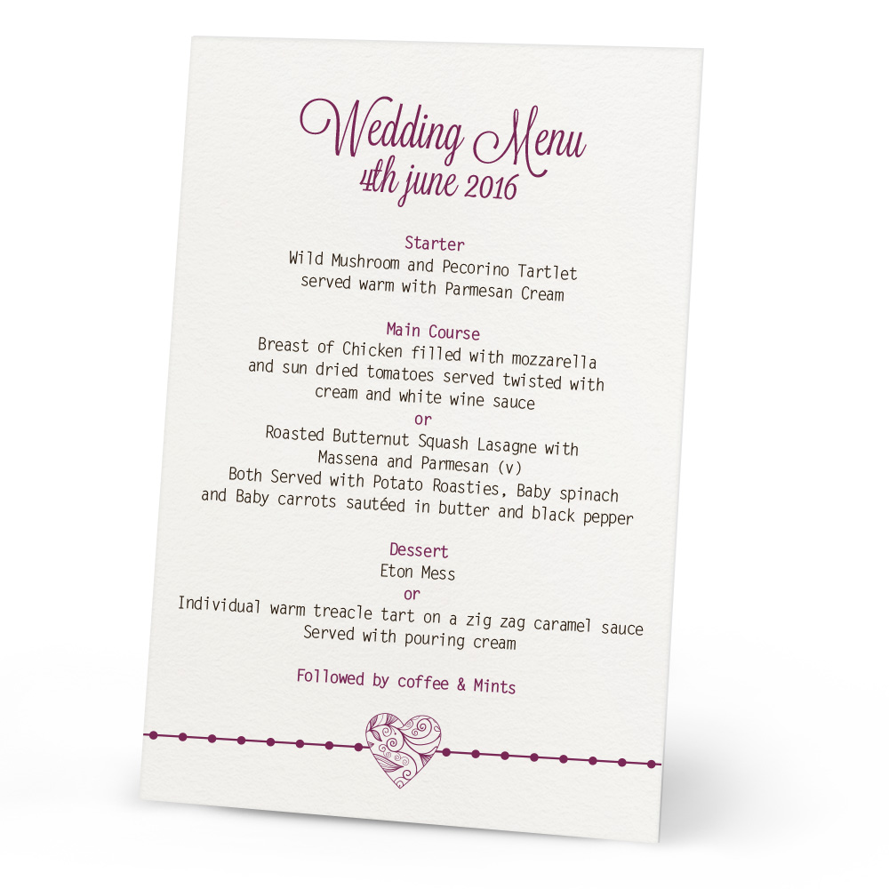 Imogen Wedding Menu