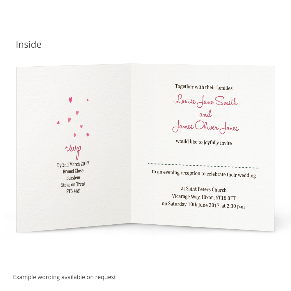 The Sadie evening invitation is a lovely simple design, featuring two birds snuggled in each others company. You can personalise the colour to be the same as your wedding and change the text to be a personal message. There’s a matching range of stationery too for your wedding day to be perfect! Matching envelopes are included with these evening invitations.