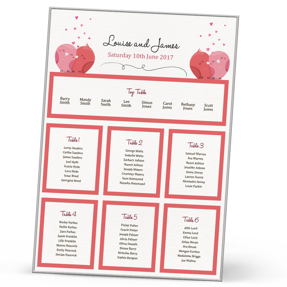 The Sadie table plan is a beautiful addition to your wedding stationery, showing your guests where they’re seated. You can match this to the rest of the your wedding stationery, with place cards and menus in the beautiful collection. A range of sizes is available – A3, A2 and A1 depending on your preference, and all are mounted into a elegant frame. If you have a different number of tables, just let us know and we will do the rest!