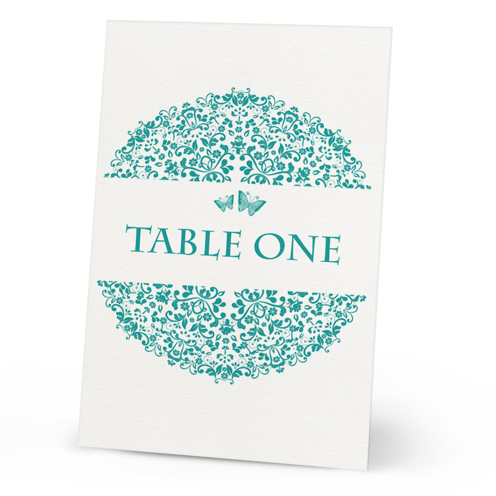With the Simone Table Numbers, which can also be changed to a table name, you can choose your colour to match the theme of your wedding. The Table Numbers can also be backed onto coloured or glitter card for that extra special finish. Every table number is double sided and printed onto 300gsm card.