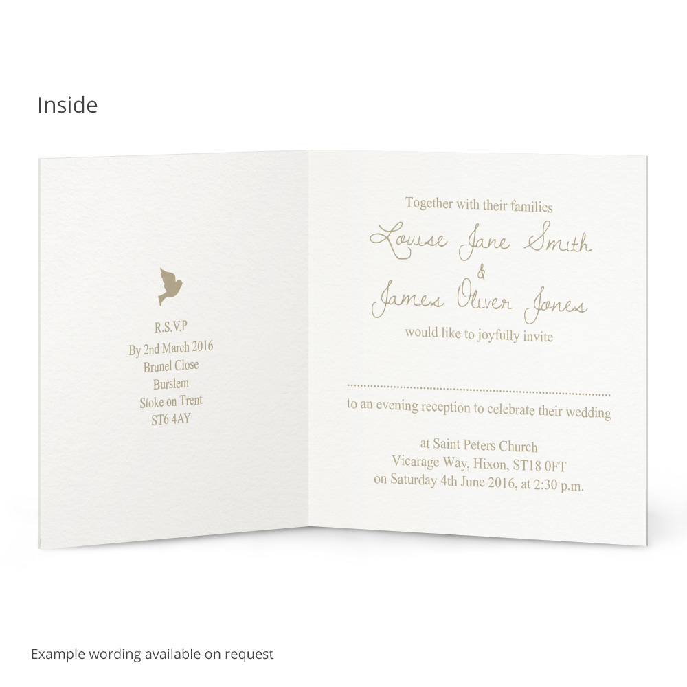 The Willow evening invitation is a lovely way to invite your guests to the evening of your wedding. With the option to personalise the colour and text, these will give your wedding a lovely personal feel and have the style to match. Matching envelopes are included too!